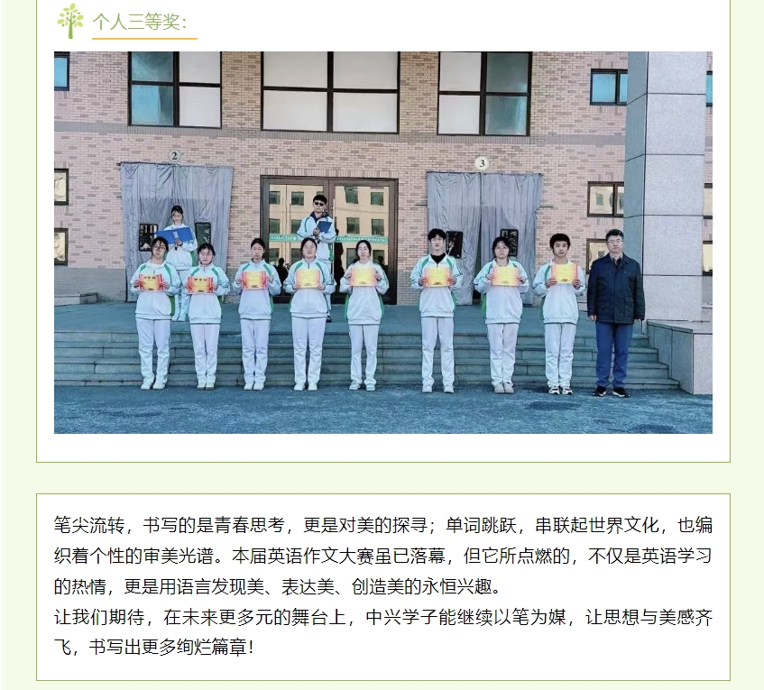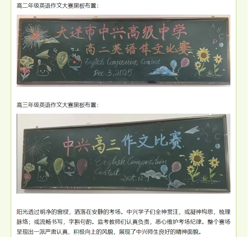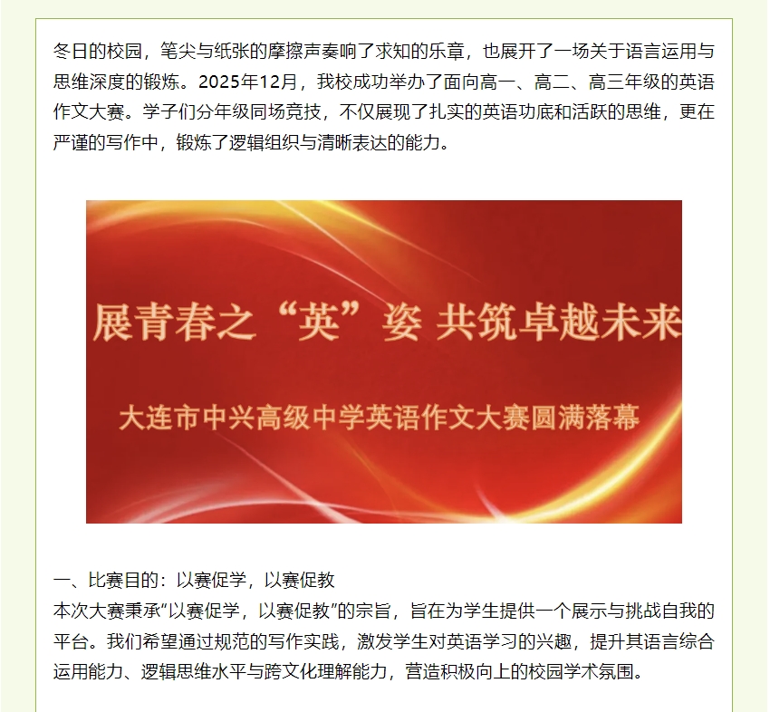 展青春“英”姿,共筑卓越未来--大连市中兴高级中学英语作文大赛圆满落幕
