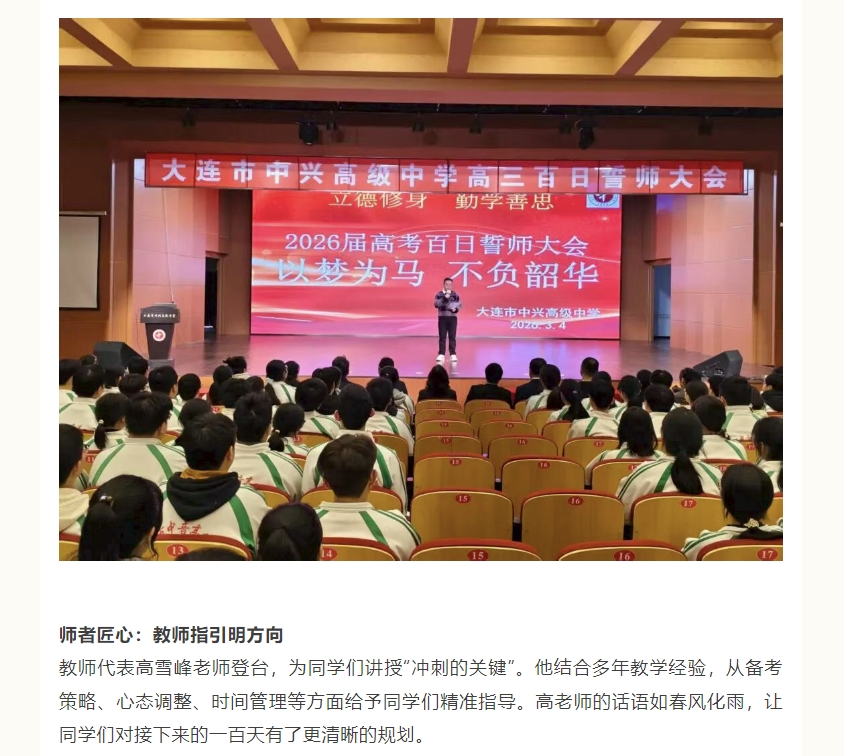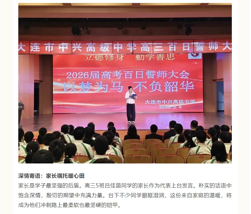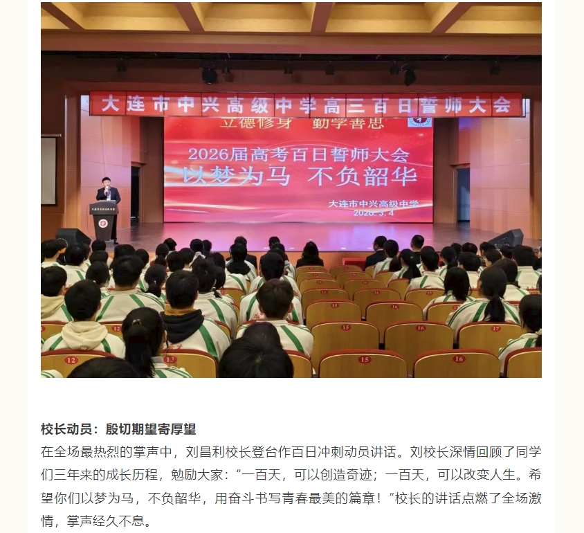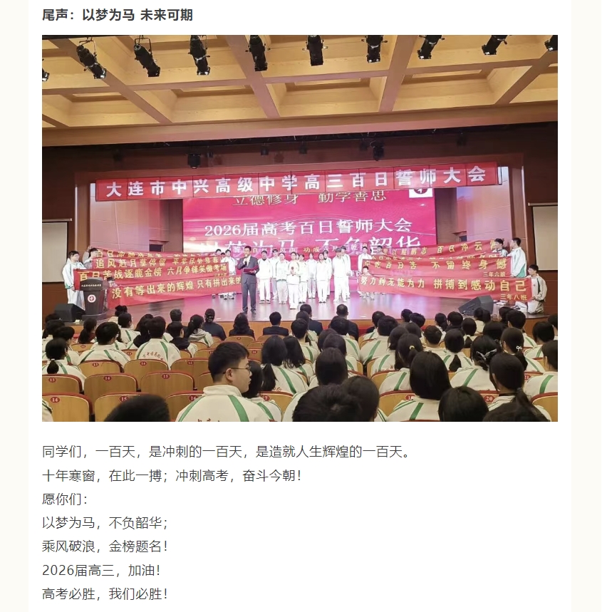 以梦为马,不负韶华--大连市中兴高级中学2026届高三百日誓师大会圆满举行