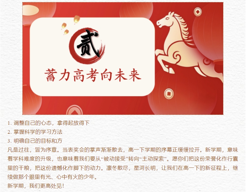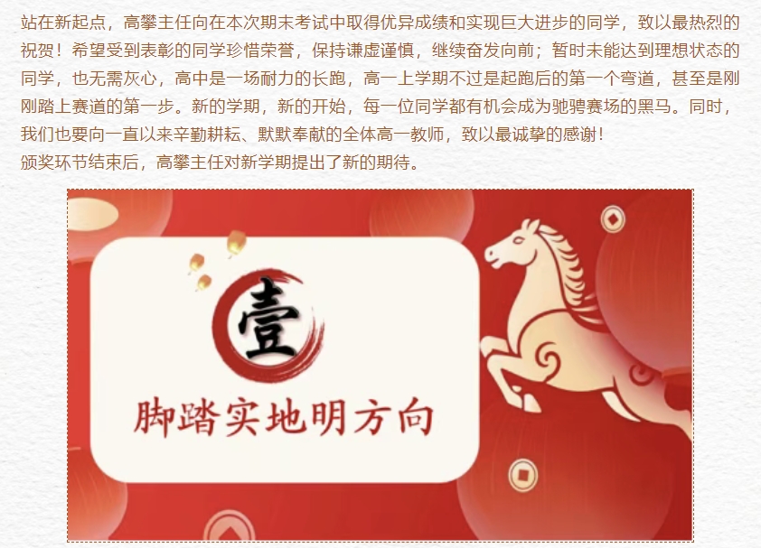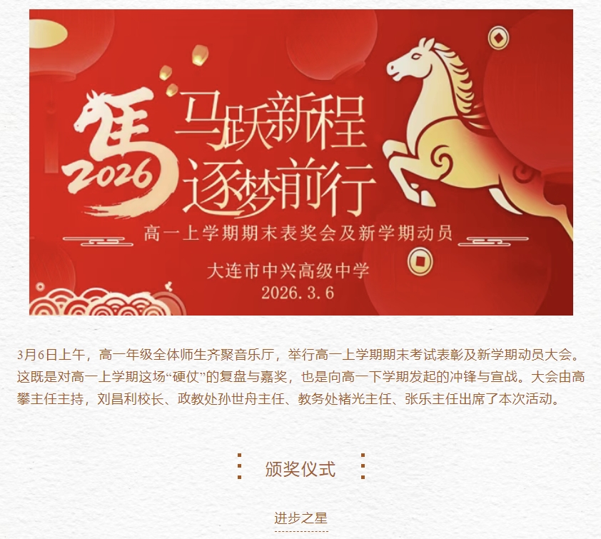 马跃新程,逐梦前行--大连市中兴高级中学高一上学期期末表奖会及新学期动员