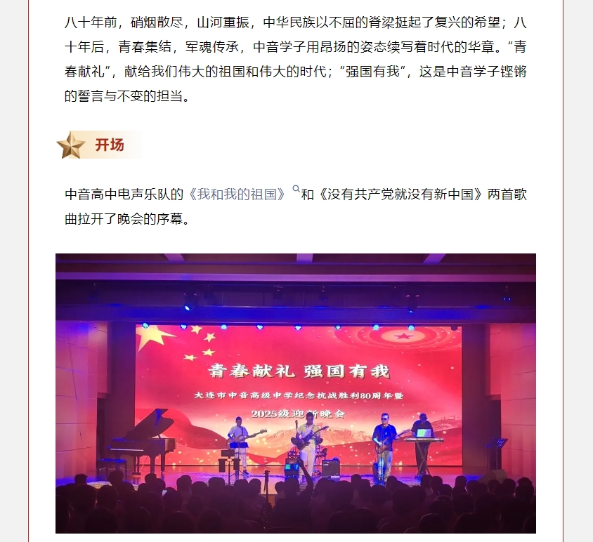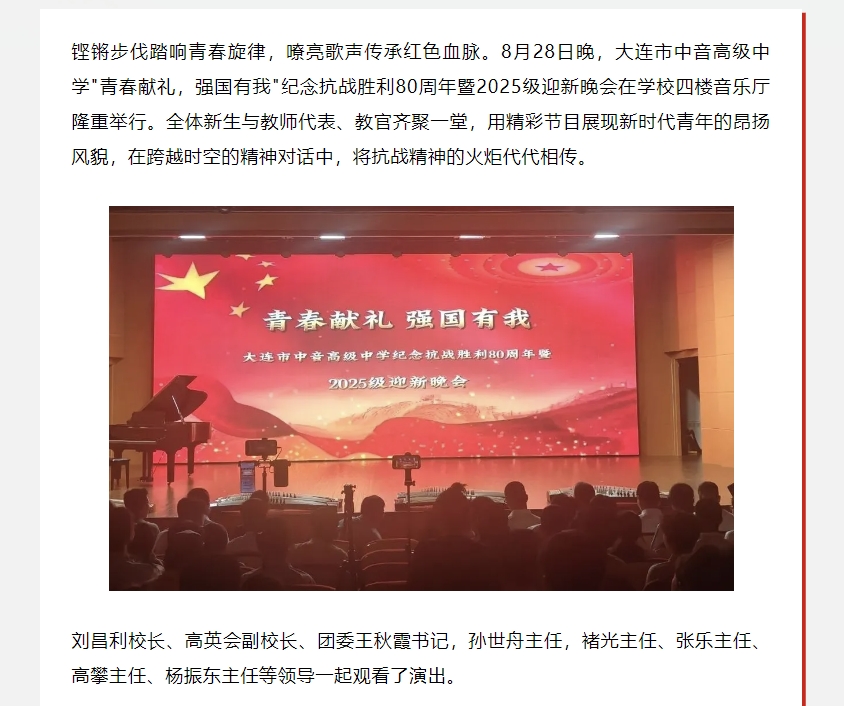 青春献礼,强国有我:大连市中音高级中学纪念抗战胜利80周年暨2025级迎新晚会璀璨上演
