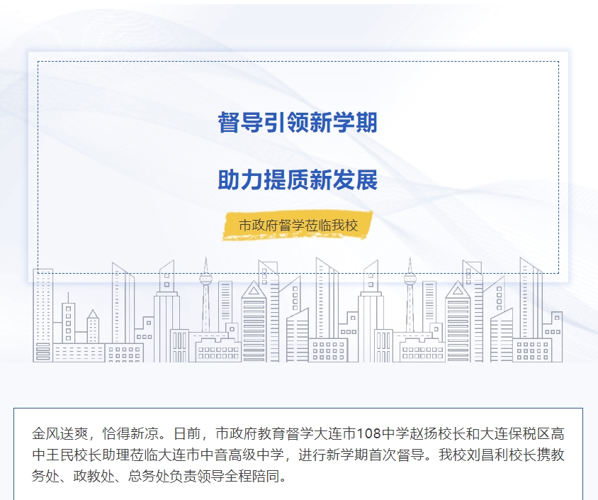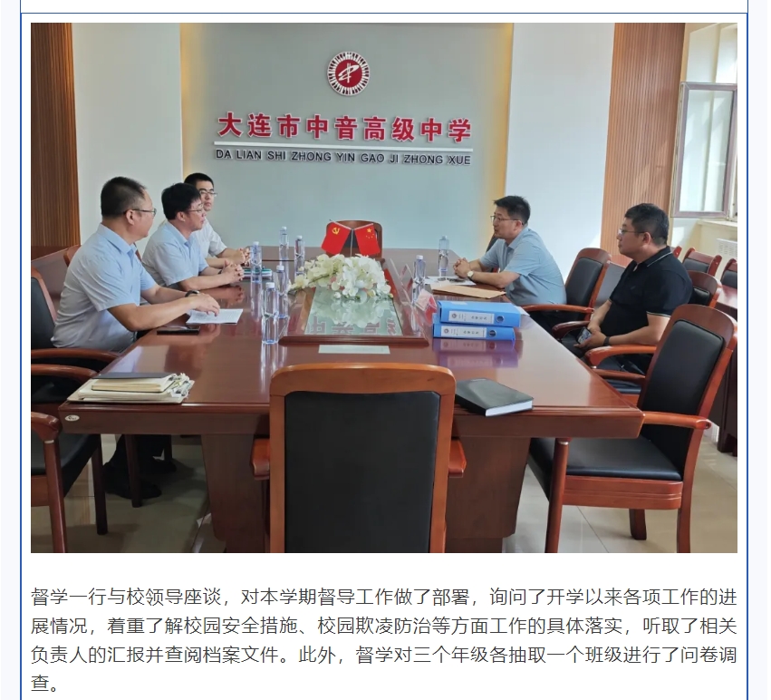 督导引领新学期,助力提质新发展--市政府督学莅临大连市中音高级中学指导工作