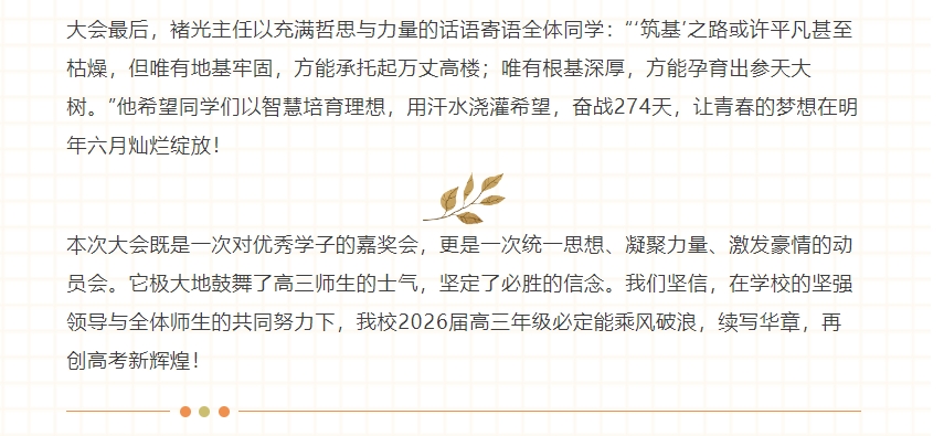 筑基逐梦启新程 砥砺奋进铸辉煌 --我校2026届高三年级隆重举行期末总结表彰暨高三复习动员大会