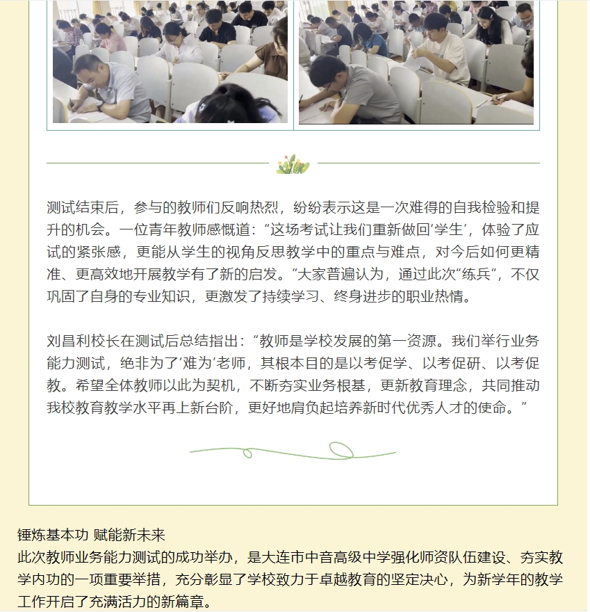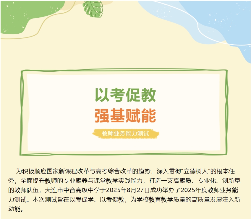 以考促教,强基赋能--大连市中音高级中学成功举行2025年教师业务能力测试