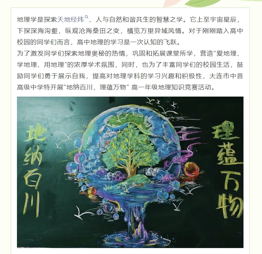 地纳百川,理蕴万物--大连市中音高级中学地理学科活动