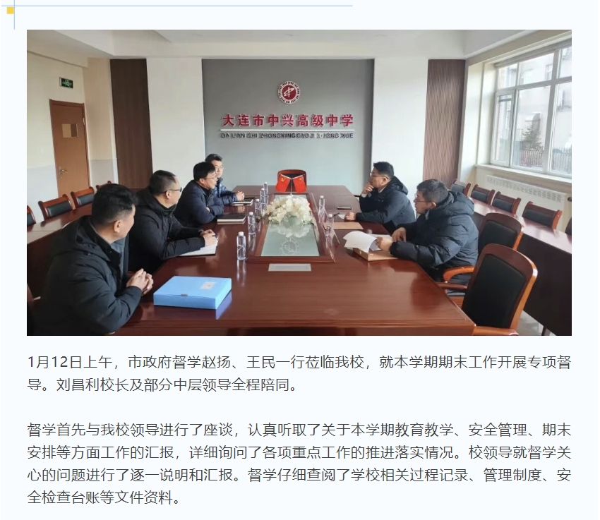 市政府督学莅临大连市中兴高级中学开展专项督导