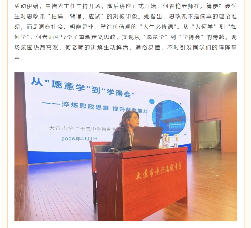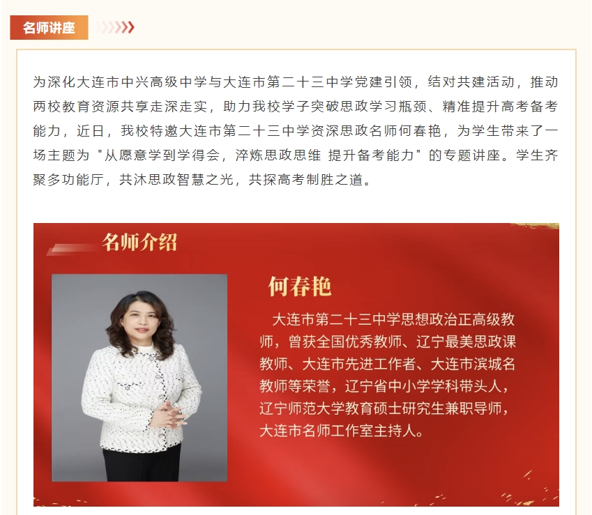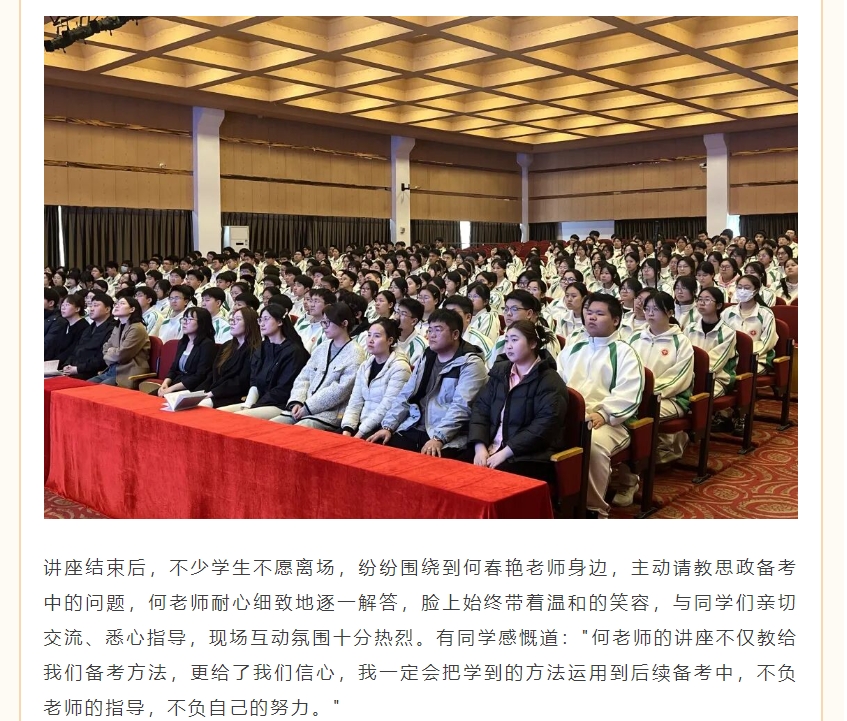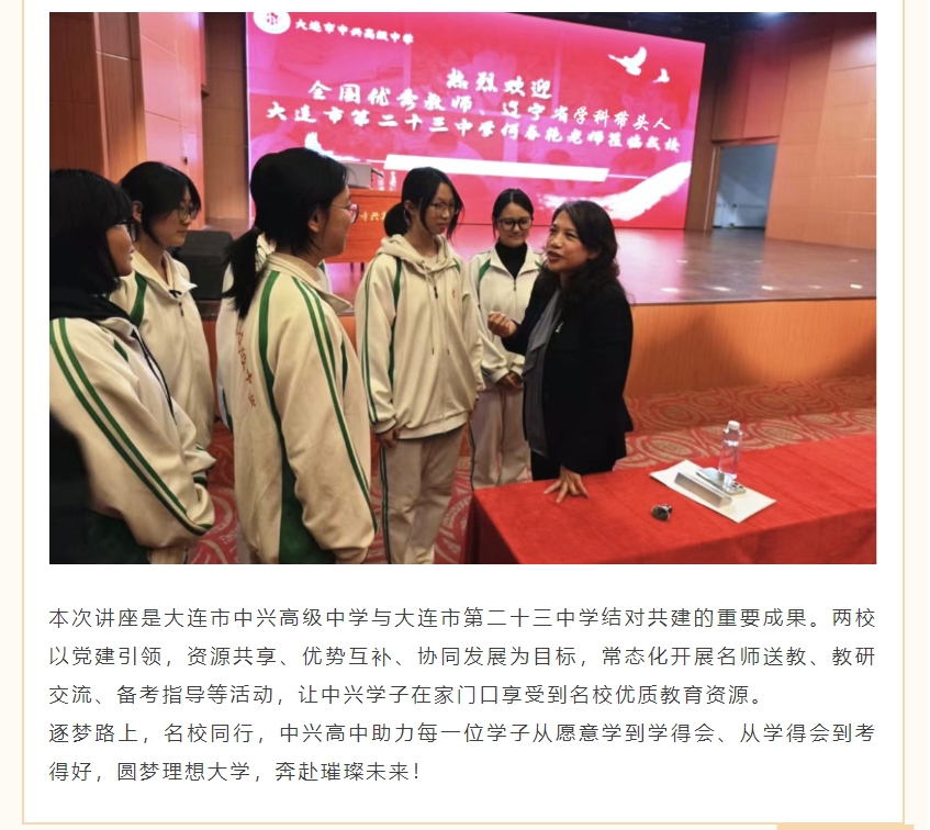 名师指导助高三 、精准提分迎高考--全国优秀教师大连二十三中何春艳老师到我校开展专题讲座
